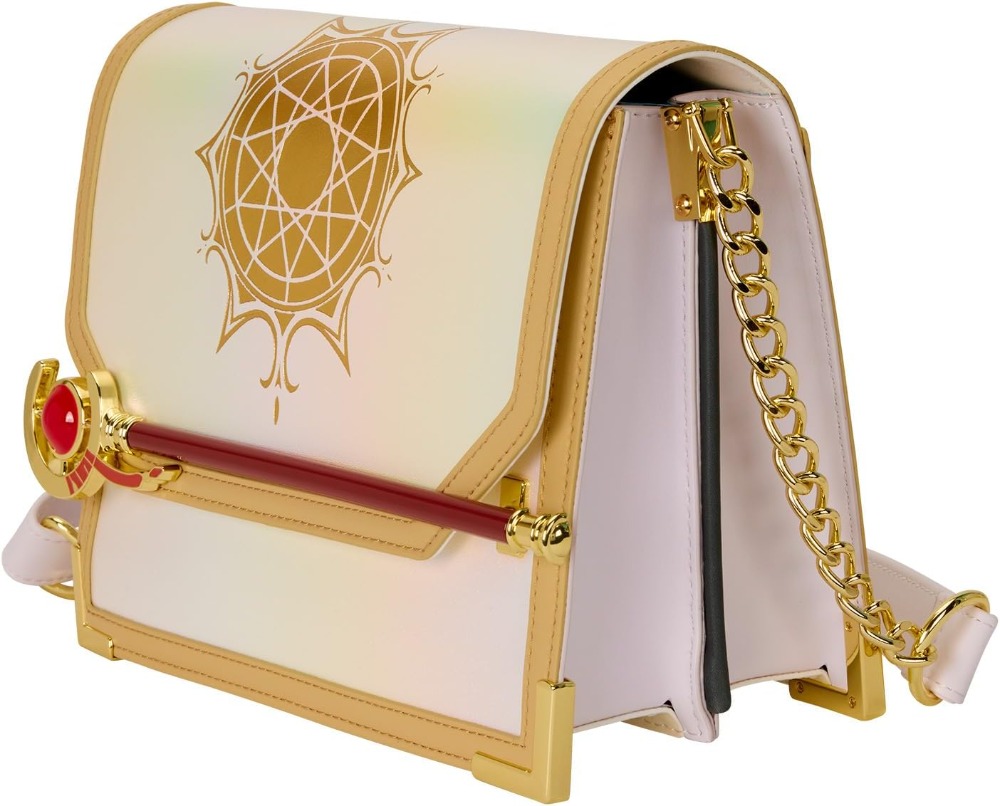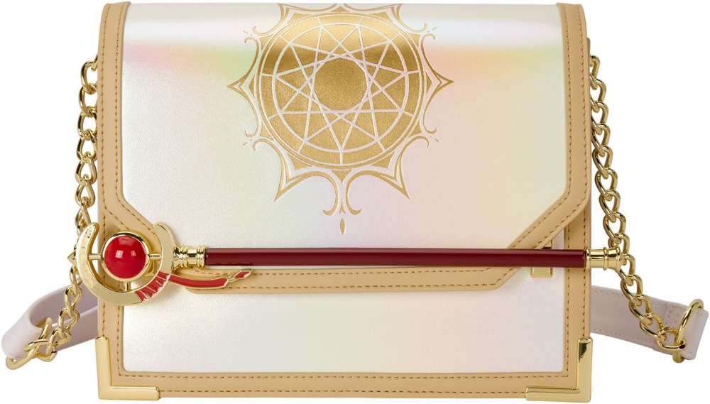 This crossbody is gold and white and shines with iridescent material. You'll find a gold foil sigil on the top flap. Across the front, you'll find a 3D molded Frieren's staff! This crossbody is the perfect finishing touch for any outfit and shows off one of your favorite animes!