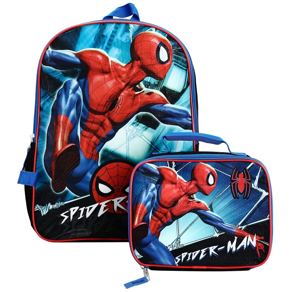 Little web-slingers are ready for action and adventure with this super cool Spider-Man backpack with matching lunchbox. This dynamic and exciting black backpack and lunchbox feature Spider-Man swinging across the front in punchy blue and red colors. The bf???????????????????rts THEN '????