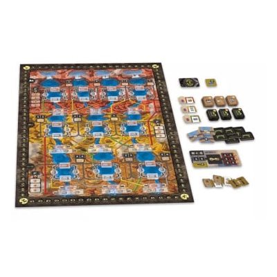The Productive Settlements are new action spaces (4 in the Mountains Area, 3 in the Hills Area, 3 in the Plains Area) that can be activated by placing the required number of Engineers. Activating a Productive Settlement has a cost in Credits that depends on the presence or absence of Bridges along the route from the Construction Site (located on the left edge in the Mountains and Plains Areas and right in the Hills Area) to the Productive Settlement you intend to activate.