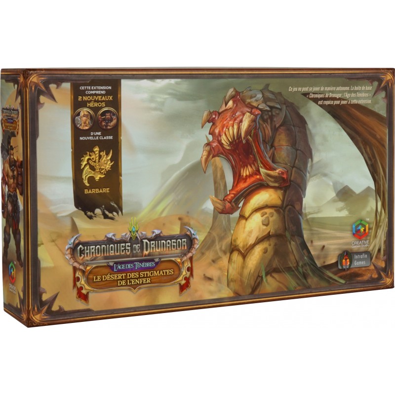 CHRONIQUES DE DRUNAGOR : L'ÂGE DES TÉNÈBRES - EXPANSION - LE DÉSERT DES STIGMATES DE L'ENFER (FRENCH) is categorised BOARDGAMES / ADVANCED GAMES / COOPERATIVE GAMES and sold by l'Imaginaire, a store and specialised website.