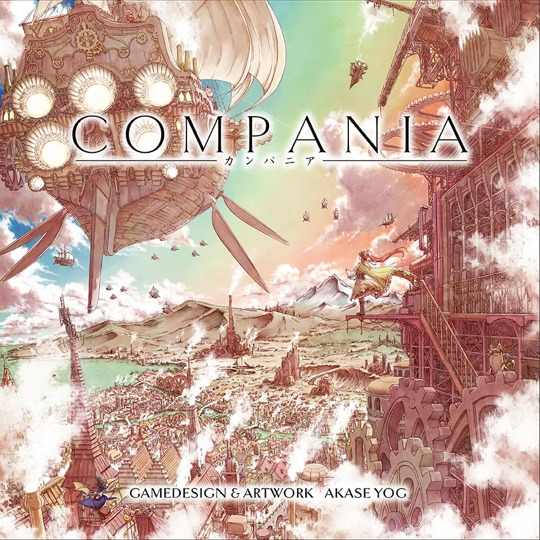 Set in a steampunk city in the clouds, Compania is a new game from Japanese game designer and cartoonist Yog Akase. In a world moving on from the industrial revolution, how far will you go? How much will you earn? Explore vast and exciting world of Compania. Meet a colorful cast of characters, experience a unique market, and realize your ambitions of profit! Do you have what it takes to make it big?