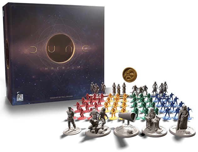 Dispatch cunning agents to further your plans. Send loyal troops into battle on Arrakis. Employ the Mentat to outsmart your rivals. Claim the Alliances of the most powerful factions in the Imperium. With 65 beautifully sculpted miniatures figures and a hefty coin to bestow upon the first player, your game will be fit for an Emperor.