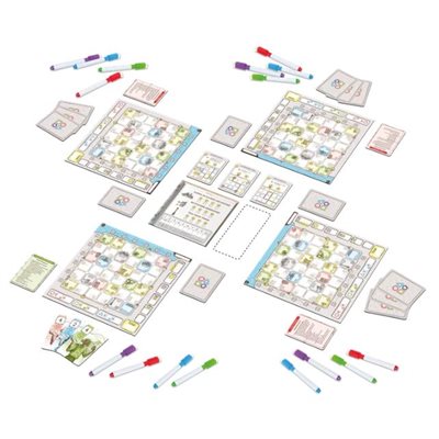 En Route is a flip-and-write game in which you create tour routes to the most interesting landmarks of the real-world cities (London, New York City, Hong Kong, Paris, Cairo, and Rio de Janeiro) and the made-up First City packed full of geek references. Every city features basic and specific mechanisms, so all of them play and feel differently.