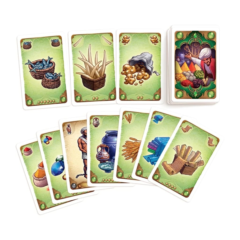 In a unique twist on the now-standard "worker placement" genre, the game begins with the meeples already in place – and players must cleverly maneuver them over the villages, markets, oases, and sacred places tiles that make up Naqala. How, when, and where you dis-place these Five Tribes of Assassins, Elders, Builders, Merchants, and Viziers determine your victory or failure.