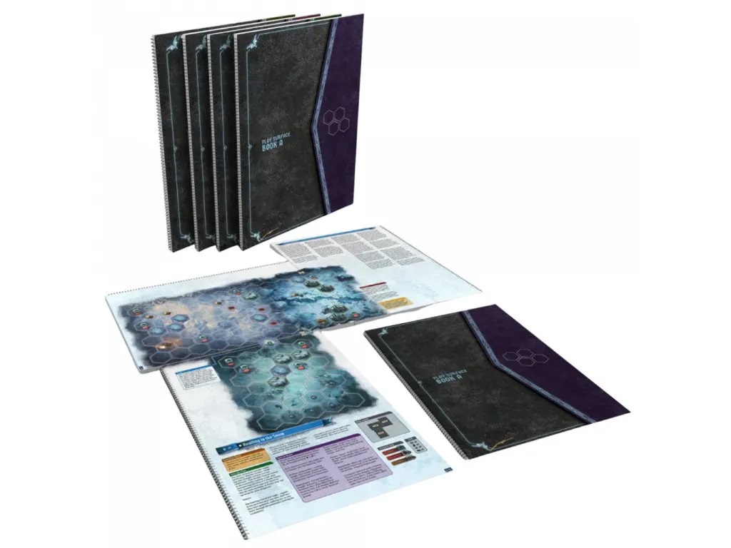 | Arrêter de vous casser la tête avec ce jeux qui est déjà assez rempli comme ça! Les livres de play surfaces sont parfait pour alléger le matériel et la mise en place! | |