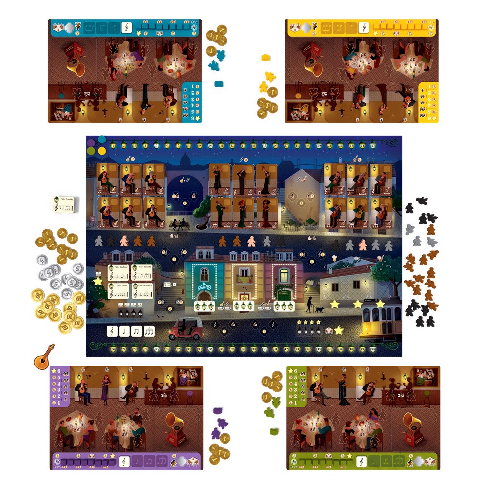 In the game House of Fado, players have to manage their restaurant, attract customers, and contract and promote fadistas and musicians, thus gaining prestige for their fado house. Managers will move their staff members to different places to perform some actions, using the same bump action as in The Gallerist.