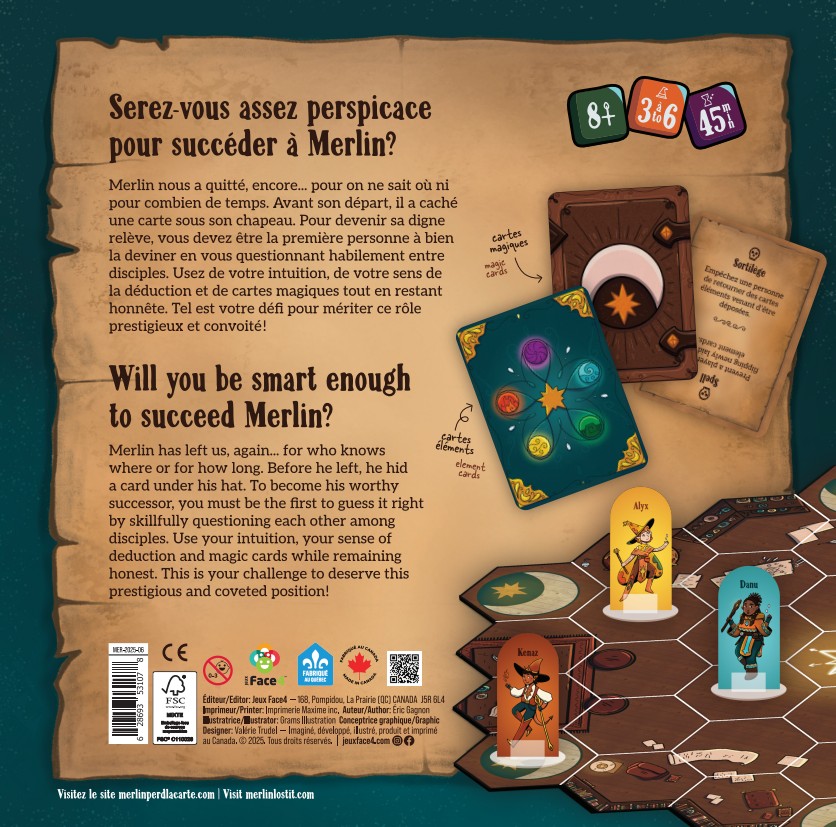 MERLIN LOST IT (BILINGUAL) is categorised BOARDGAMES / JEUX JEUNESSE : MATHÉMATIQUE / LOGIQUE ET RÉSOLUTION DE PROBLÈME and sold by l'Imaginaire, a store and specialised website.