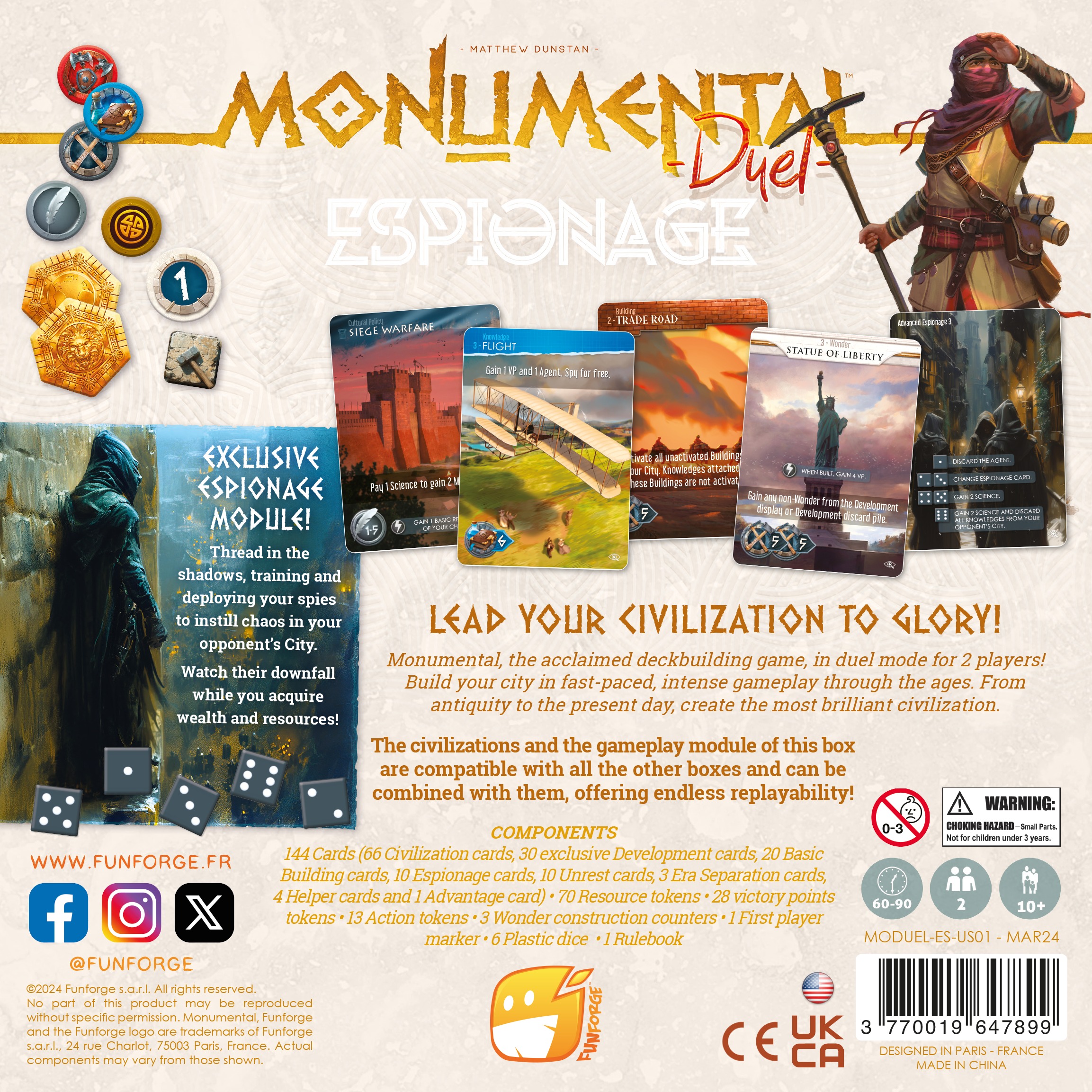 MONUMENTAL: DUEL - BASE GAME - ESPIONAGE (ENGLISH) is categorised BOARDGAMES / ADVANCED GAMES / COOPERATIVE GAMES and sold by l'Imaginaire, a store and specialised website.