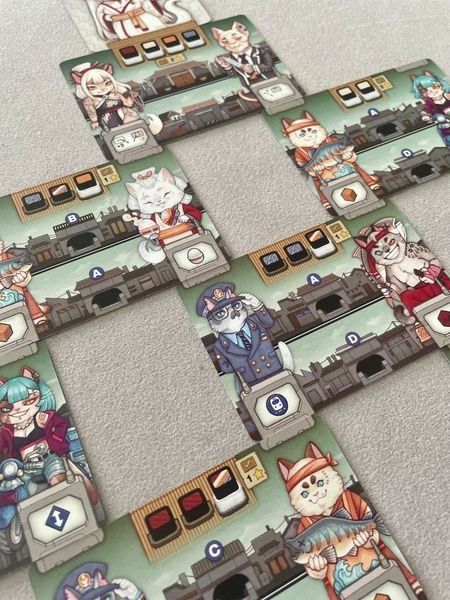 Neko Syndicate is a "Thinky-filler" by Dani García, featuring an innovative tableau building mechanic where cards are both the actions and the goals to achieve: fast set-up, simultaneous play, low interaction and brain burner in a 30 minutes easy to play hard to master beautiful game.