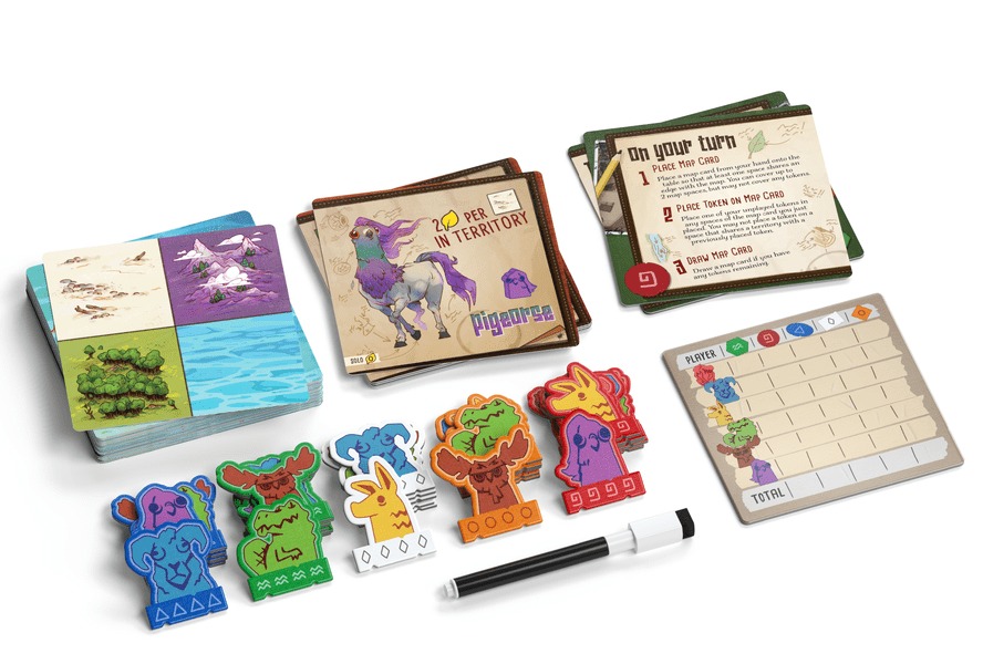 As an intrepid investigator of all things idiosyncratic, your job is to explore the island and document these fantastic creatures. On your turn, explore by placing a terrain card somewhere on the island (with the ability to cover up previous terrain!).