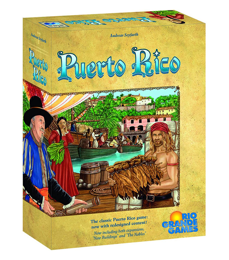 In Puerto Rico players assume the roles of colonial governors on the island of Puerto Rico. The aim of the game is to amass victory points by shipping goods to Europe or by constructing buildings.