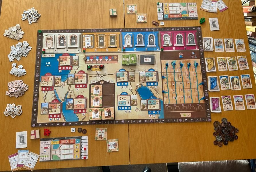 In the game, players represent merchants who travel on business trips and buy and sell goods in the various cities in the region. Resafa had no local sources of water, so it depended heavily on large cisterns to collect the spring and winter rainwater to make the area habitable. Players build water tanks and canals to distribute that water where it is needed. In the cities, they build workshops to help their businesses grow, which will allow them to collect resources and camels. They also construct gardens between the businesses, generating more resources and also victory points.