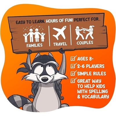 Il est facile à apprendre, rapide à jouer et c’est le jeu à emporter parfait pour divertir tout le monde pendant des heures. Vous n’avez pas besoin d’aimer les jeux de mots pour AIMER celui-ci. Enfants, ados et adultes seront comblés !