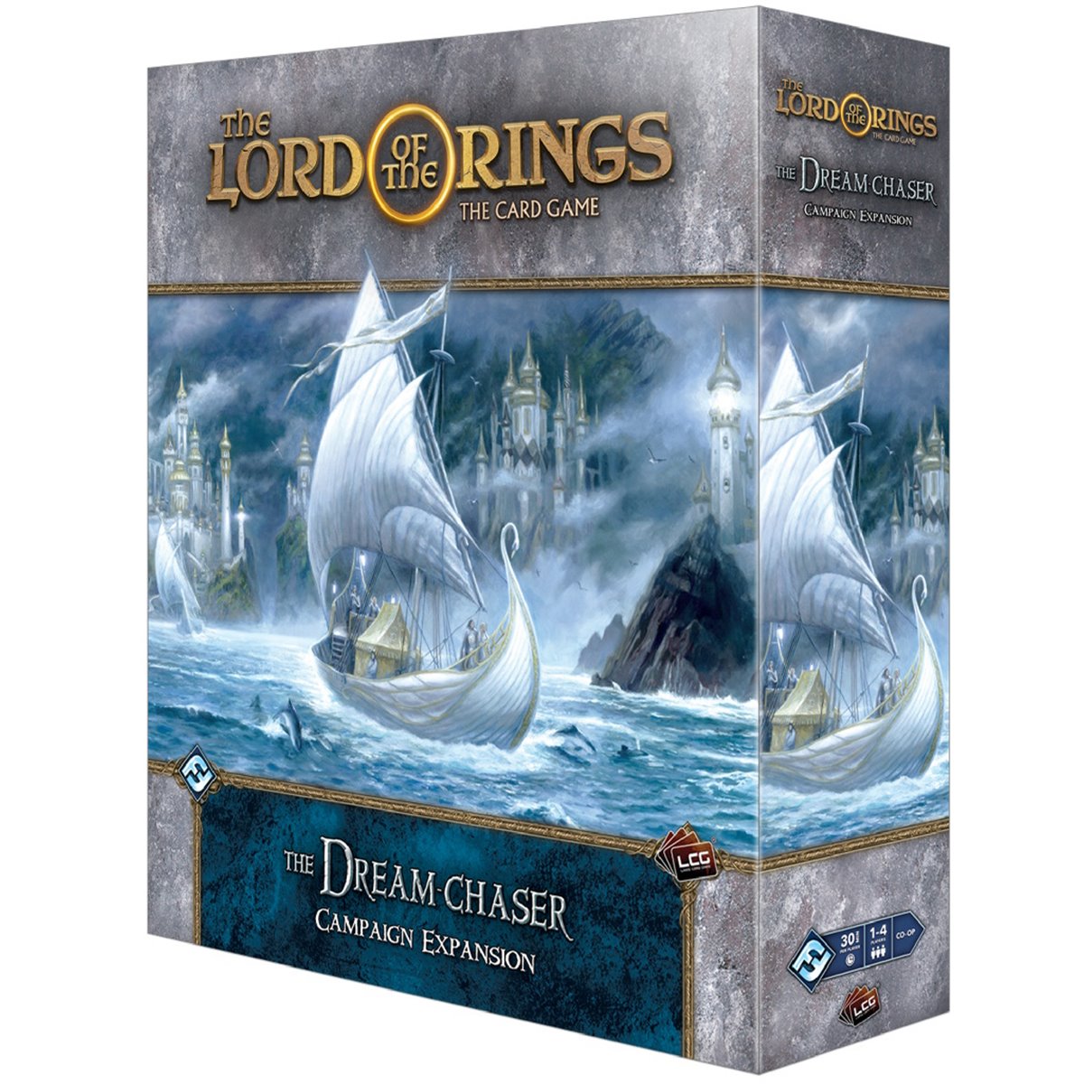 In the Dream-chaser Campaign Expansion for The Lord of the Rings: The Card Game, one to four players sail across the oceans of Middle-earth, battling Corsairs on the high seas and exploring uncharted ruins of Númenor, all while defending the Grey Havens from fierce raiders. Over the course of nine scenarios—which can be played standalone or as part of a larger campaign—the heroes must confront pirates, wraiths, sea monsters, and a persuasive villain who commands a fleet of powerful ships.