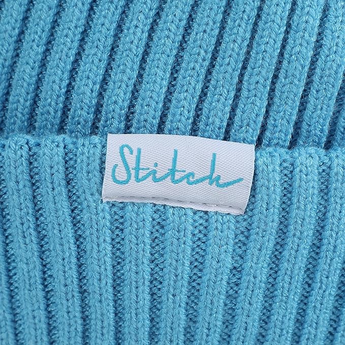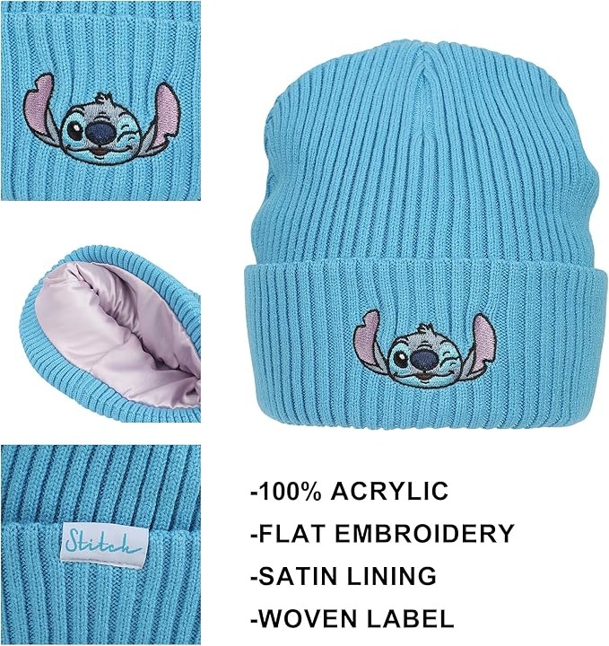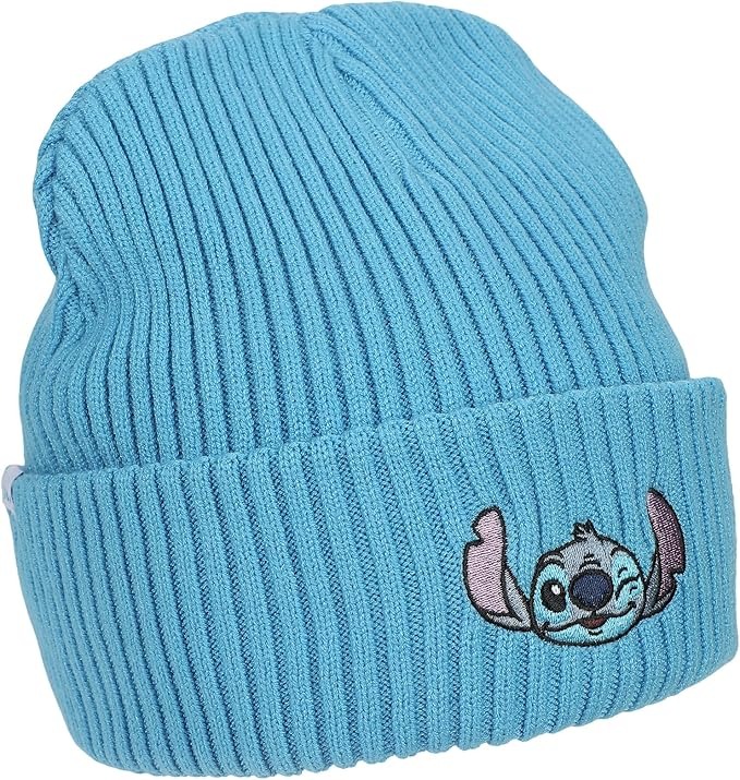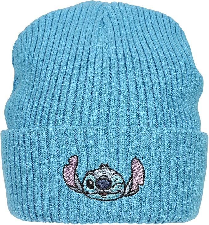 Show off your Lilo & Stitch fandom with this Ribbed Knit, Embroidered Stitch on Blue Cuff Beanie. Perfect for everyday wear or as a collectible piece.