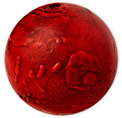 A round, spherical 99.9%pure silver red Mars coin. A must have for your collection.