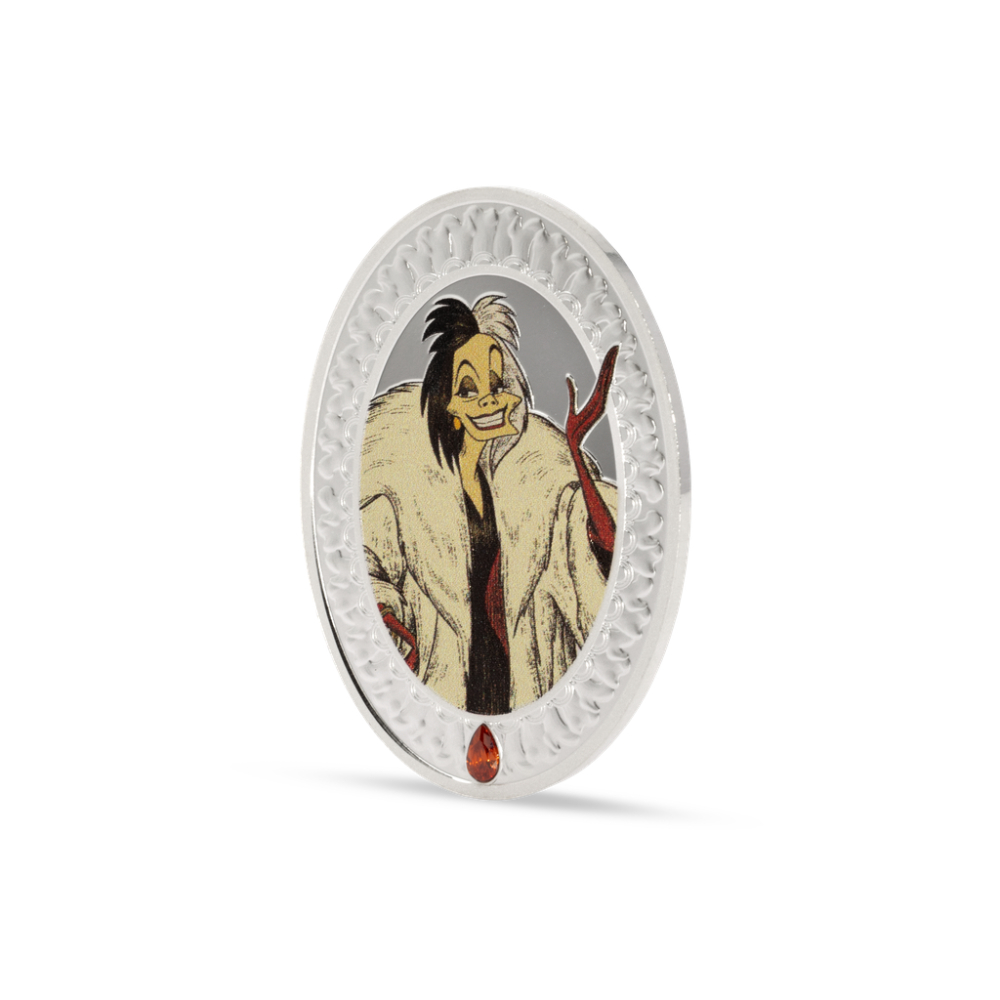 101 DALMATIANS - PORTRAIT OF DISNEY VILLAINS: CRUELLA DE VIL - 2025 NEW ZEALAND COINS 04 is categorised COINS AND PAPER MONEY / 12- AGORO & NEW ZEALAND MINT / 01- FINE SILVER COINS and sold by l'Imaginaire, a store and specialised website.
