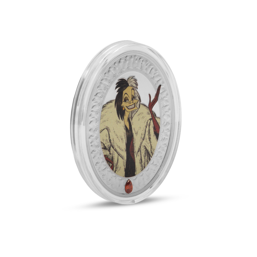 The fourth release in our Disney Villains series, this officially licensed collectible comes in a custom-shaped capsule, complete with a gleaming red gemstone and an engraved quote from Disney’s 101 Dalmatians beneath the inner silver cameo.