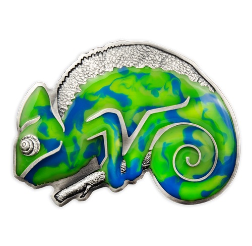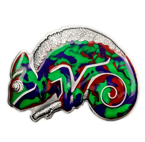 Like its real-life counterpart, this 3 oz. silver chameleon changes colours in response to temperature—hold it in your hand to activate the thermochromic effect, and watch the hues shift.