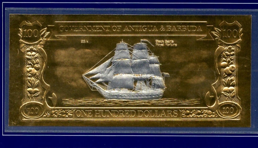 GOVERNEMENT OF ANTIGUA & BARBUDA - BARTHOLOME ROBERTS AND THE ROYAL FORTUNE - 100 DOLLARS 1981 is categorised COINS AND PAPER MONEY / FOREIGN PAPER MONEY and sold by l'Imaginaire, a store and specialised website.