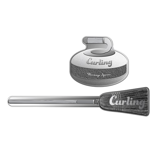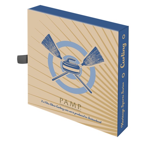 This incredible Curling 2-coin set marks the fourth release in the new 2022 Heritage Sports series from RCM – produced by PAMP Suisse. The game of curling is generally thought to have started in the 16th century and in the cold Northern European winters. Brought by early settlers to North America in the 18th century, this grassroots game helped provide a pastime during long winters. It has since evolved into a modern international sport, and although it is played at the Olympic level, curling is fun at all levels of play.