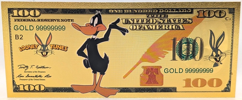 HUMORISTIC NOTES - LOONEY TUNES: DAFFY DUCK - UNITED STATES 100 DOLLARS NOTE (PURE GOLD PLATED)
