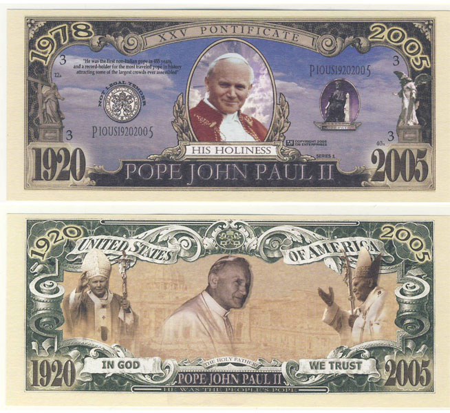 HUMORISTIC NOTES - POPE JOHN PAUL II - UNITED STATES NOTE