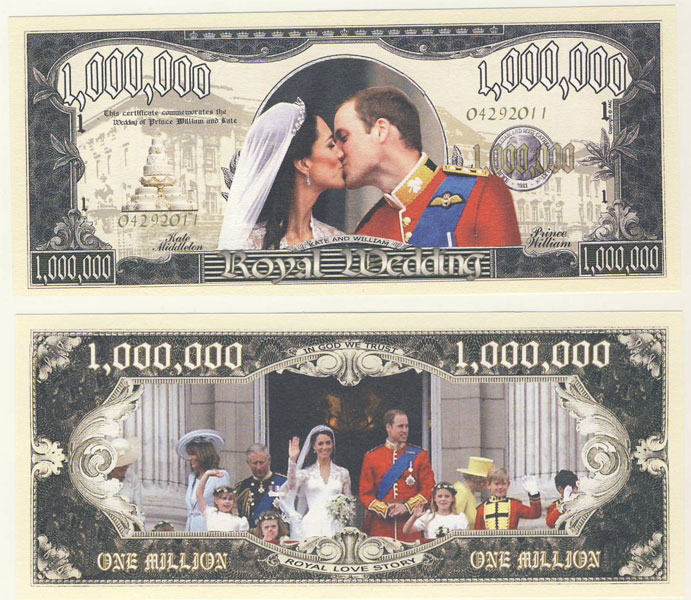HUMORISTIC NOTES - ROYAL WEDDING - UNITED STATES ONE MILLION DOLLARS NOTE