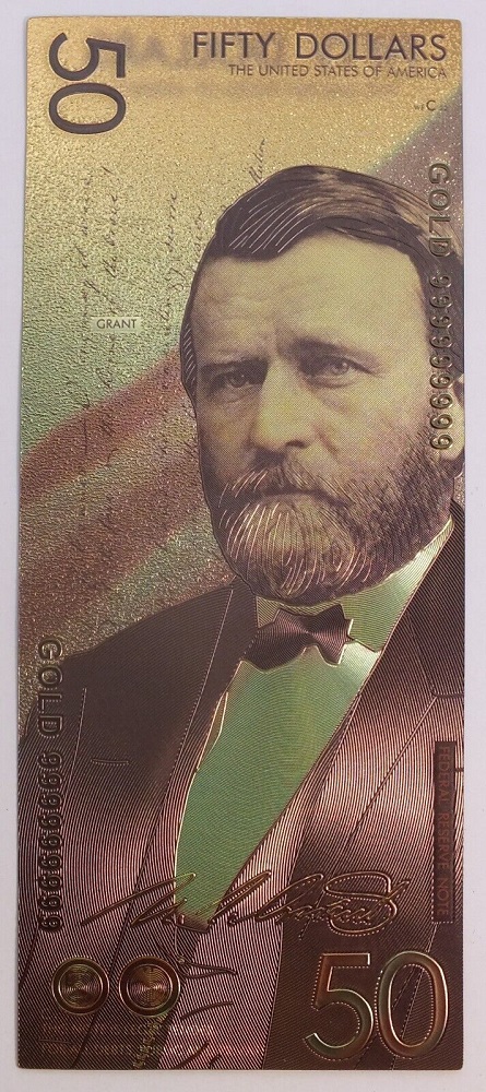 HUMORISTIC NOTES - UNITED STATES PRESIDENTS: ULYSSES S. GRANT (FLAG) - UNITED STATES 50 DOLLARS NOTE (PURE GOLD PLATED)