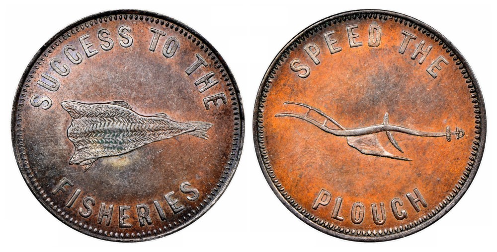 JETON DU ÎLE DU PRINCE ÉDOUARD - 1859 PRINCE EDWARD ISLAND TOKENS - (1859) SPEED THE PLOUGH - SUCCESS TO THE FISHERIES, CLEVIS