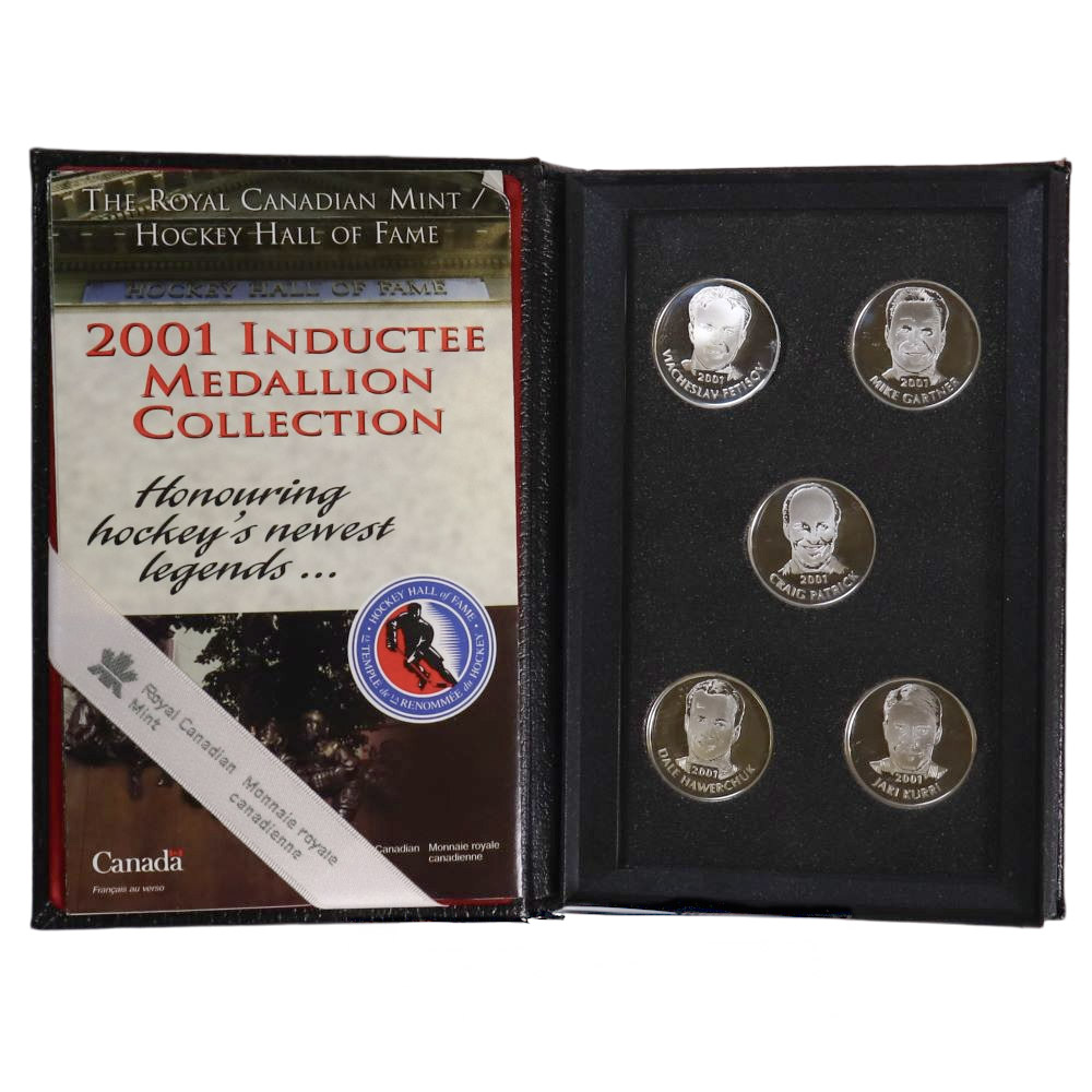 MEDALLIONS - 2001 HOCKEY HALL OF FAME INDUCTEE MEDALLION COLLECTION - 2001 CANADIAN COINS is categorised COINS AND PAPER MONEY / 08- ROYAL CANADIAN MINT / 16- SPORTS and sold by l'Imaginaire, a store and specialised website.