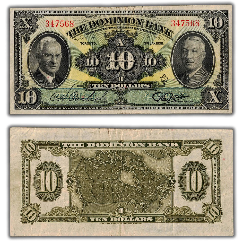 THE DOMINION BANK - 1938 10-DOLLAR NOTE - 1938 CANADIAN BANKNOTES is categorised COINS AND PAPER MONEY / CANADIAN PAPER MONEY / CHARTERED BANK and sold by l'Imaginaire, a store and specialised website.