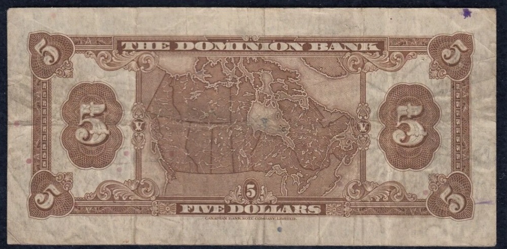 THE DOMINION BANK - 1938 5-DOLLAR NOTE - 1938 CANADIAN BANKNOTES is categorised COINS AND PAPER MONEY / CANADIAN PAPER MONEY / CHARTERED BANK and sold by l'Imaginaire, a store and specialised website.