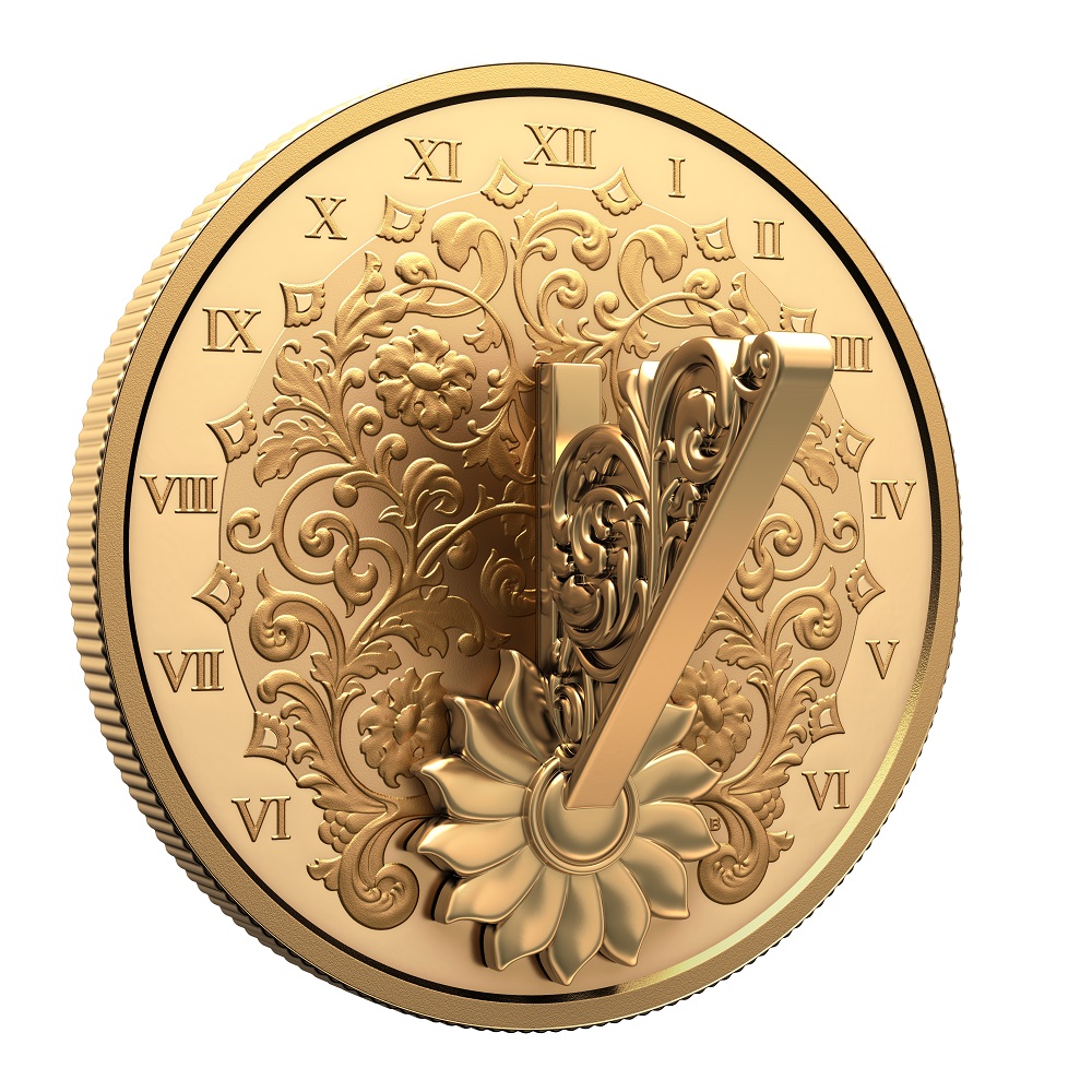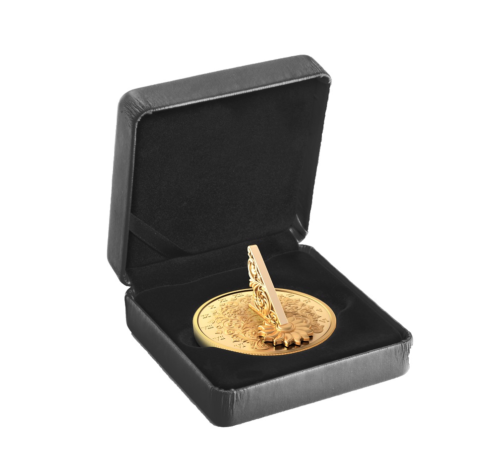 More than just an eye-catching garden adornment, the sundial is humanity’s oldest known timekeeping device—one that functions just as well today as it did in ancient times. An elaborate and functional showcase of craftsmanship, this limited collectible from the Royal Canadian Mint adds a working sundial to your coin collection. Its embellishment is a gold-plated brass gnomon that, when placed in view of the sun and in the direction of true north, casts an angled shadow onto the elaborately engraved gold-plated 99.99% pure silver base to indicate local solar time.