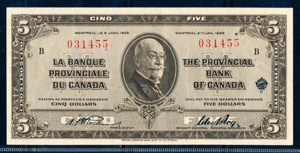 THE PROVINCIAL BANK OF CANADA - 1935 5-DOLLAR NOTE - 1935 CANADIAN BANKNOTES is categorised COINS AND PAPER MONEY / CANADIAN PAPER MONEY / CHARTERED BANK and sold by l'Imaginaire, a store and specialised website.