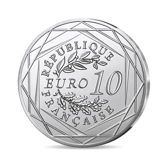 The reverse of the €10 and €100 coins shows the face value surrounded by two branches, one of oak, the other of laurel, evoking the Euro symbol. The entire reverse design is framed by ‘République Française’ and a series of lines representing the Hexagon.