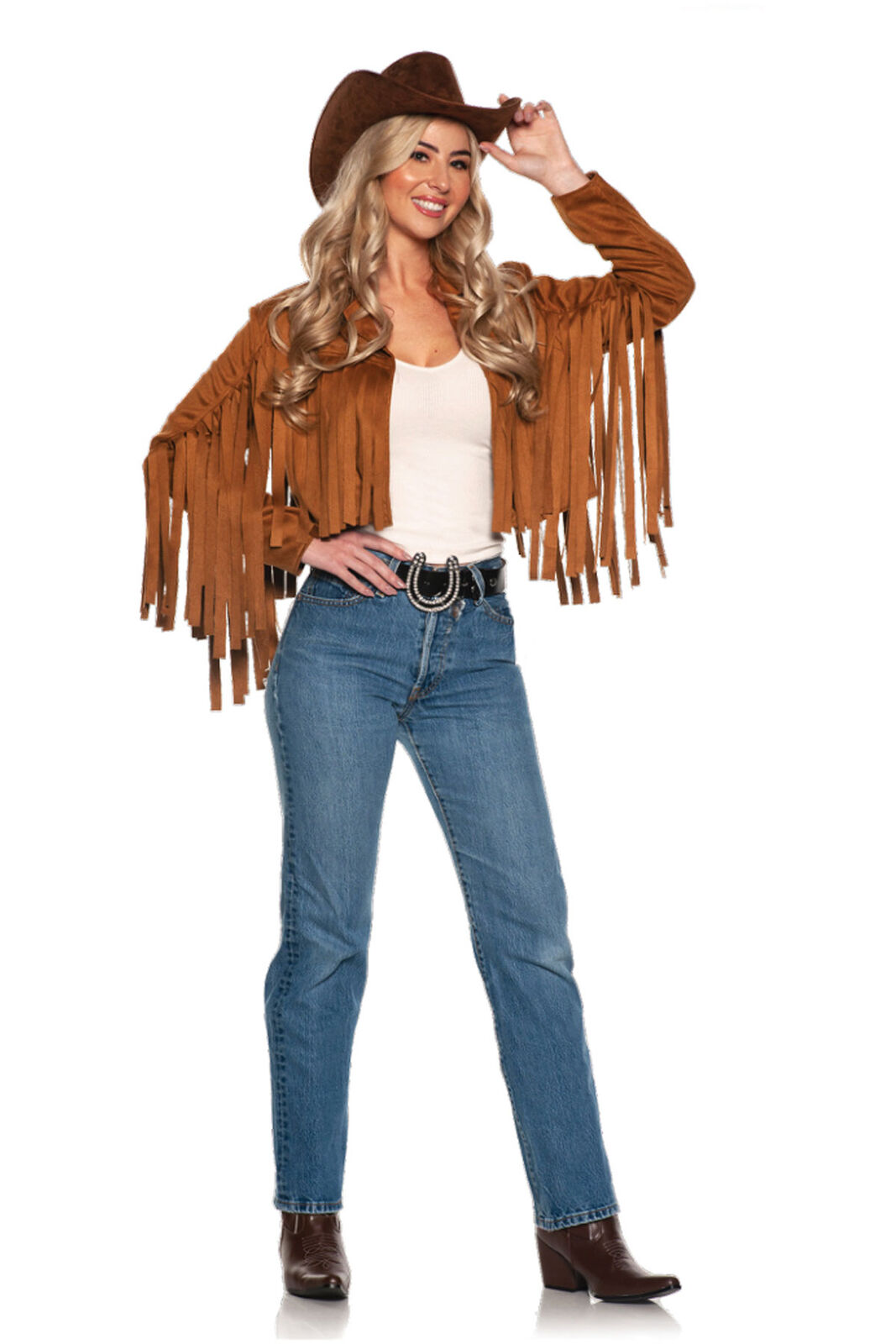 INCLUDES: faux suede cropped jacket with attached fringe