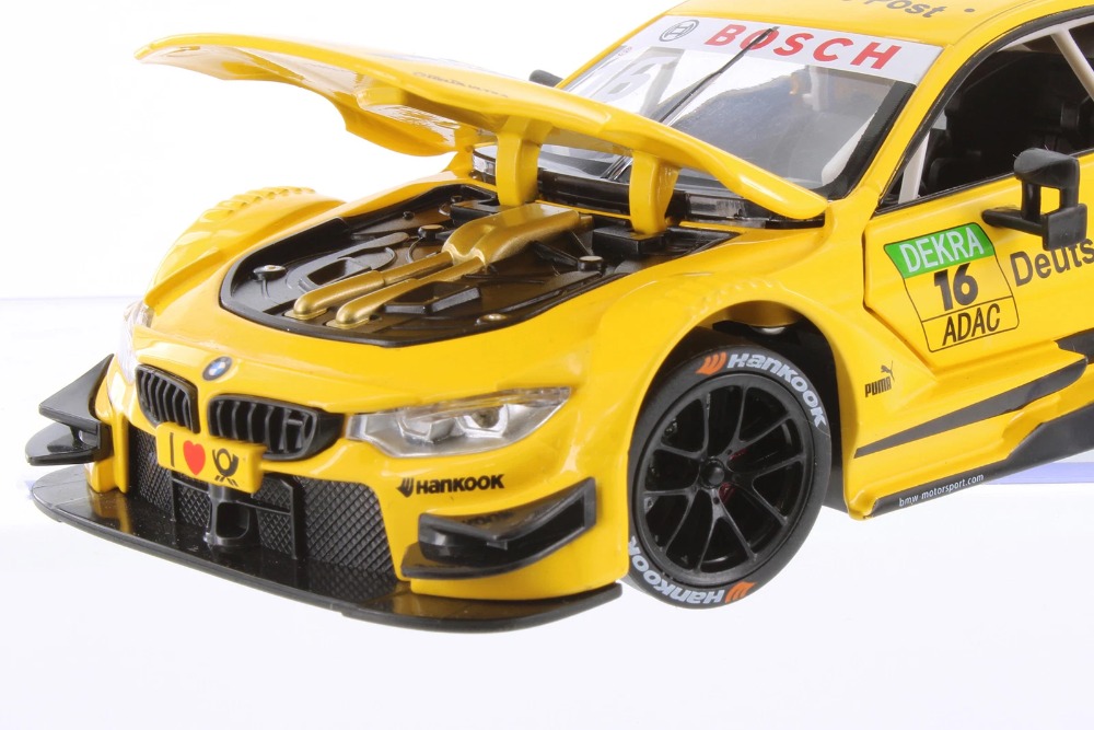 Make your own movies with this neat race car from Showcasts! This BMW M4 DTM is a 1/24 scale model replica. It comes in yellow and features freewheeling, steering wheel, openable doors and hood. It's a brilliant automobile for any race car collection, and ideal for ardent BMW lovers!