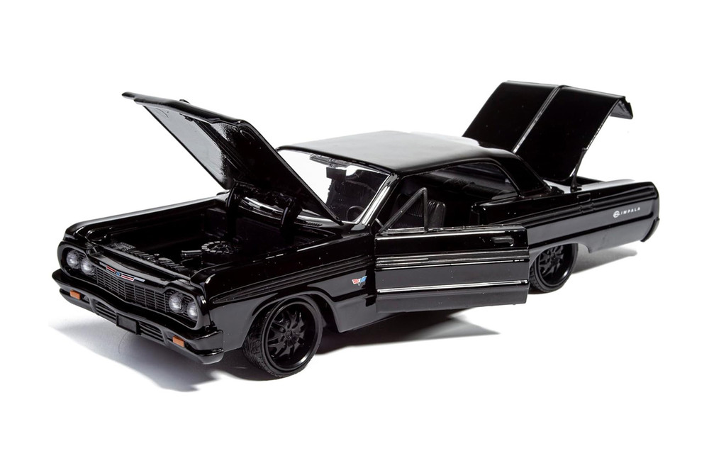 You won't believe the realistic detail on this cool muscle car from Showcasts! This 1964 Chevrolet Impala Hardtop is a 1/24 scale model replica. It comes in black and features workable steering, free wheeling, openable doors, hood, and trunk. It's an outstanding piece for any muscle car collection, and an awesome find for die-hard Chevrolet aficionados!