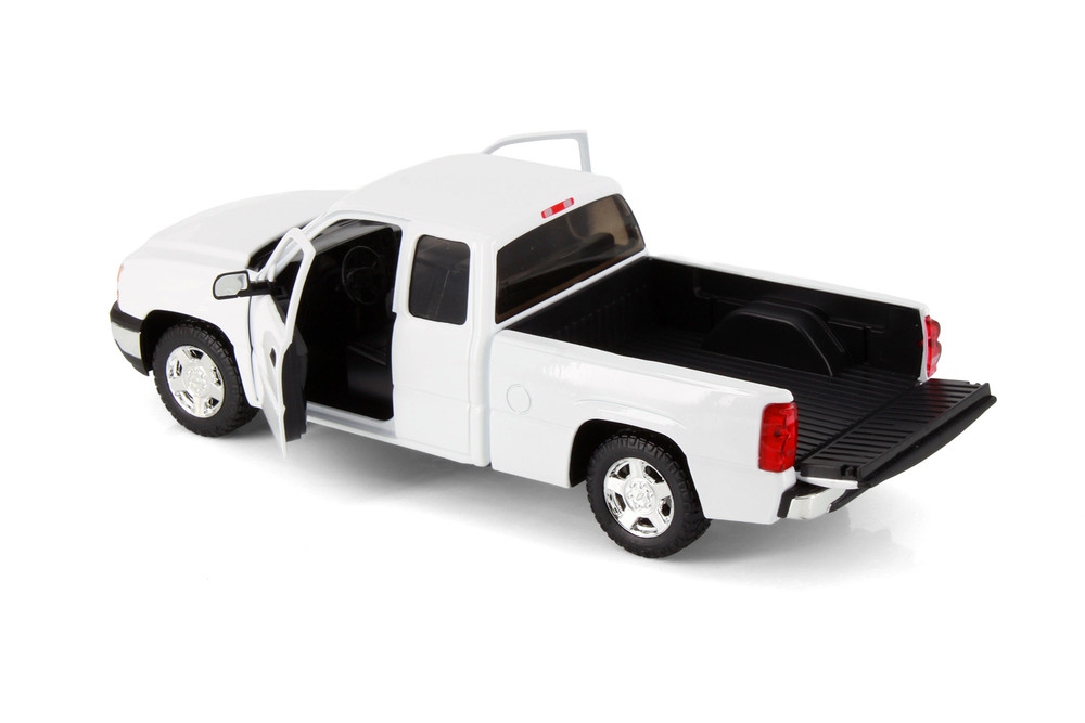 Get your hands on this authentic pickup truck from Showcasts! This 2006 Chevrolet Silverado 1500 Double Cab Truck is a 1/25 scale model replica. It comes in white and features freewheeling, openable doors and tailgate. It's an exceptional selection for any pickup truck collection, and just right for ardent Chevrolet fans!