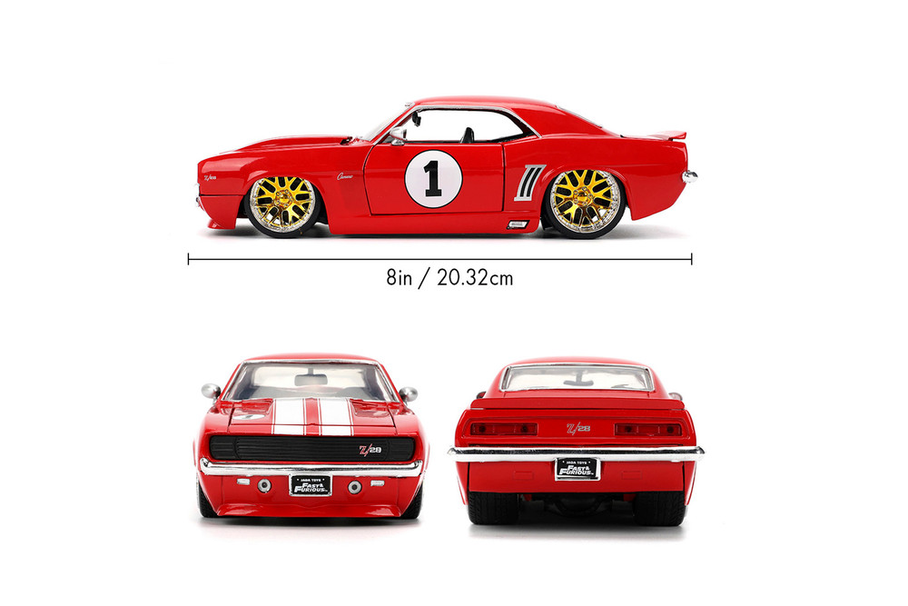 This 1969 Chevrolet Camaro #1 is a 1/24 scale model replica. It comes in red and features openable doors, hood, and trunk. It's a brilliant item for any muscle car collection, and just right for unwavering Fast & Furious enthusiasts!