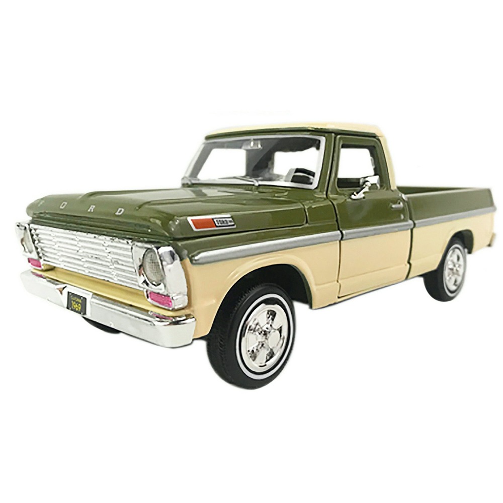 Enjoy this amazing pickup truck from Showcasts! This 1969 Ford F-100 Pickup is a 1/24 scale model replica. It comes in green and features openable doors & hood. It's an outstanding model for any pickup truck collection, and an awesome find for avid Ford fans!
