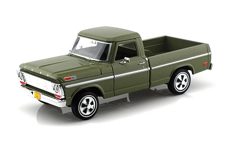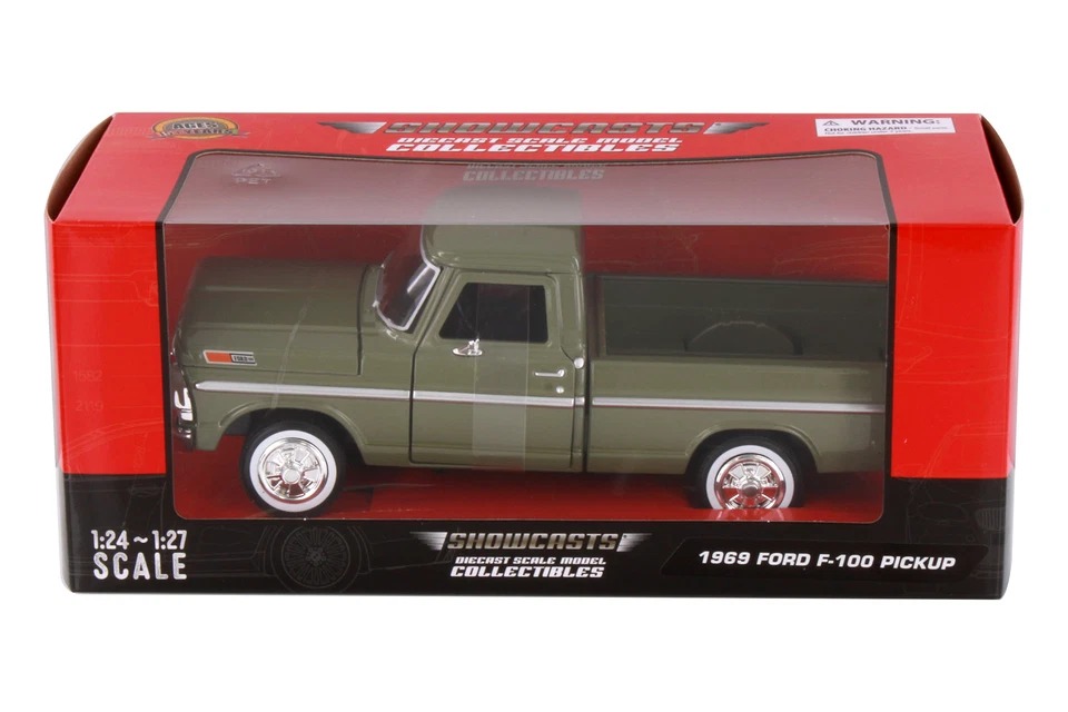 Enjoy this amazing pickup truck from Showcasts! This 1969 Ford F-100 Pickup is a 1/24 scale model replica. It comes in green and features openable doors & hood. It's an outstanding model for any pickup truck collection, and an awesome find for avid Ford fans!