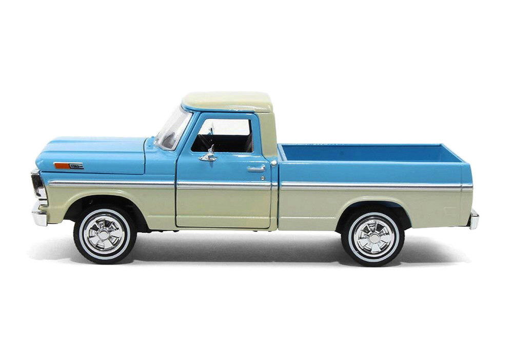 FORD - 1969 FORD F-100 PICKUP, CREAM / BLUE - 1/24 is categorised DIE-CAST AND SCALE MODELS / CARS AND BIKES / SCALE: 1/24 and sold by l'Imaginaire, a store and specialised website.
