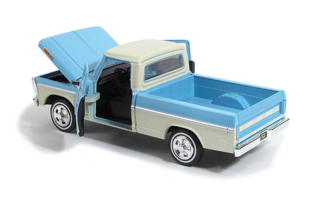Enjoy this amazing pickup truck from Showcasts! This 1969 Ford F-100 Pickup is a 1/24 scale model replica. It comes in green and features openable doors & hood. It's an outstanding model for any pickup truck collection, and an awesome find for avid Ford fans!