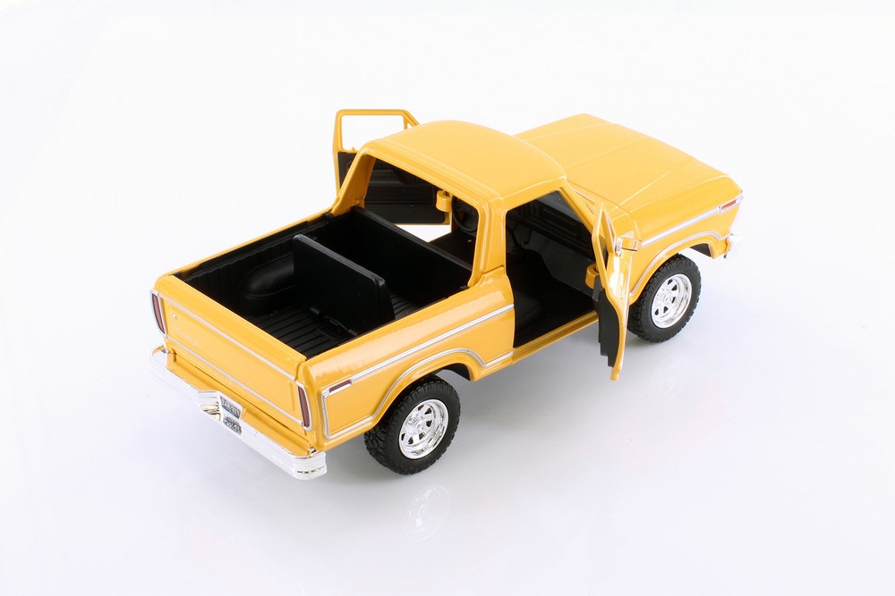 Enjoy this small-scale suv from Motor Max! This 1978 Ford Bronco Custom is a 1/24 scale model replica. It comes in yellow and features opening doors, detailed interior and exterior, free wheel action. It's a superb automobile for any suv collection, and wonderful for loyal Ford fanatics!