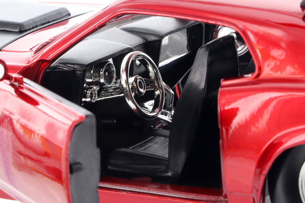 Feel the need for speed with this brilliant muscle car from the 70s. This 1970 Ford Mustang Boss 429 is a 1/24 scale scale diecast model replica. It comes in red and features openable doors, hood, and trunk, detailed interior and exterior, real rubber tires, free wheel action. It's an outstanding automobile for any muscle car collection, and an awesome find for enthusiastic Ford aficionados!