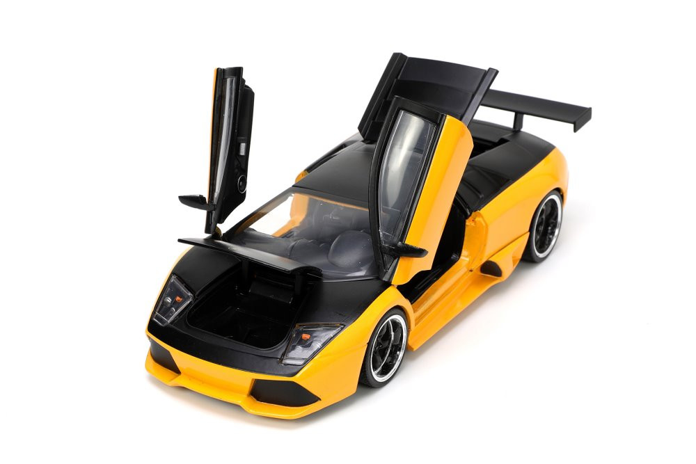 Check out this amazing sports car from Jada Toys! This Lamborghini Murciélago LP64 is a 1/24 scale model replica. It comes in orange and features openable doors, frunk and engine compartment, free wheel action. It's an excellent selection for any sports car collection, and just right for faithful Lamborghini connoisseurs!