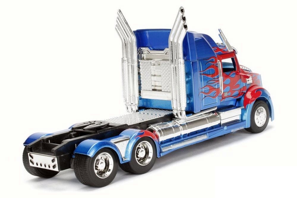 Make your neighbors jealous with this small-scale hollywood replica from Jada! This TRANSFORMERS 5 Optimus Prime is a 1/24 scale diecast model replica. It comes in blue w/red. It's a fantastic selection for any movie car collection, and a real gem for devoted Transformers admirers!