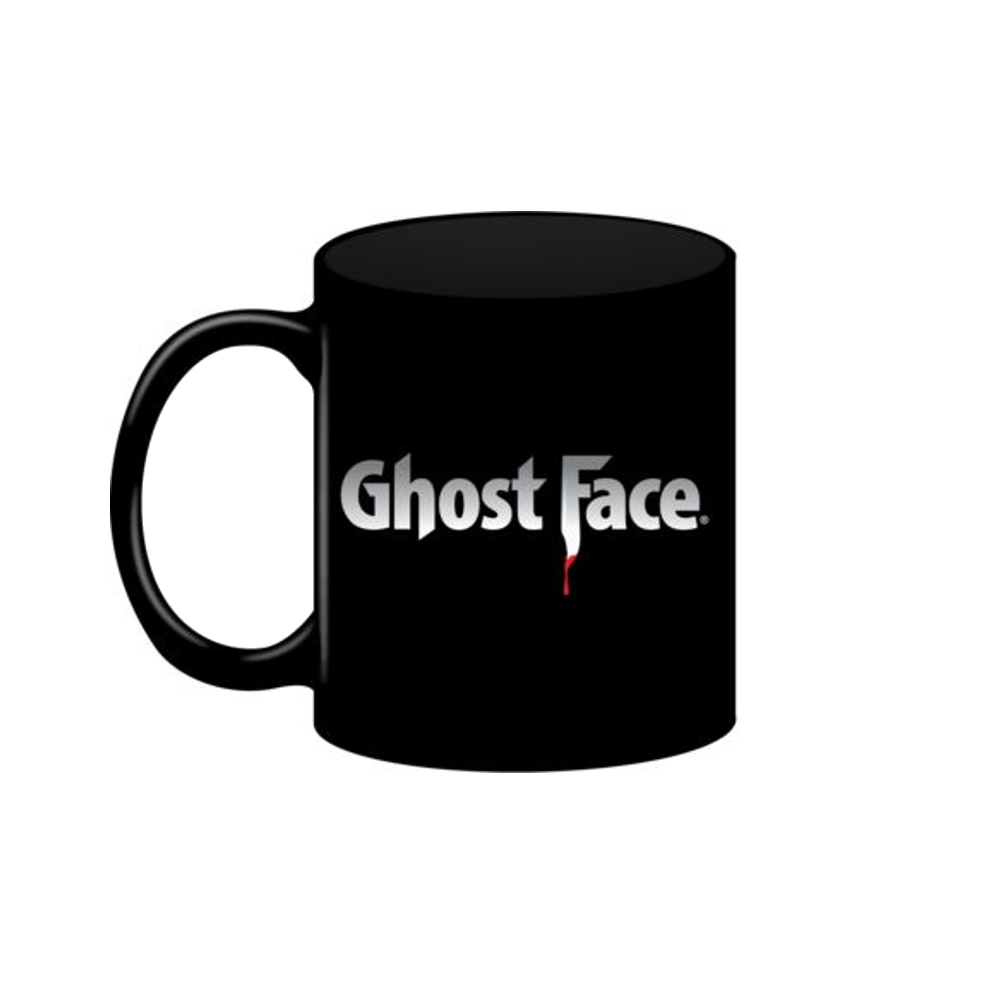 Sip your favorite beverage in this Ghost Face mug! Featuring a sleek black design with an official Ghost Face logo on one side and masked face on the other, this mug is a must-have for horror movie nights.